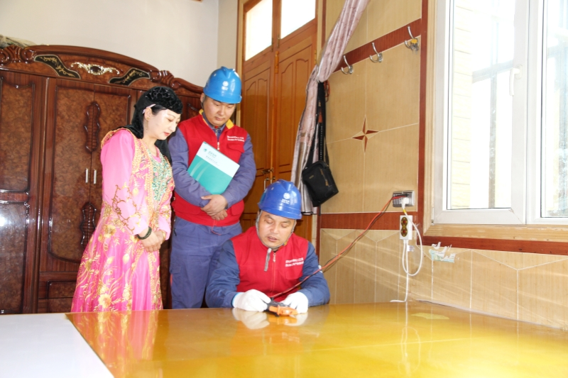 ▲国网青海黄化供电公司员工在撒立坊村村民家中排查电热炕用电隐患